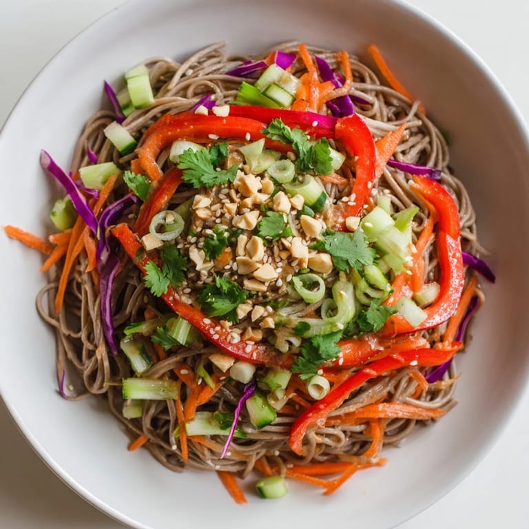 Save There's something about summer that makes you crave cold noodles—I learned this the hard way when my air conditioning broke during a heatwave and I found myself standing in front of an open fridge at midnight, desperate for anything cooling. That's when I grabbed a package of soba noodles and started throwing together whatever vegetables looked promising, then whisked up a ginger-sesame sauce that changed everything. One bite and I understood why this dish shows up on tables across Southeast Asia, and now it's my answer to any "it's too hot to cook" moment.