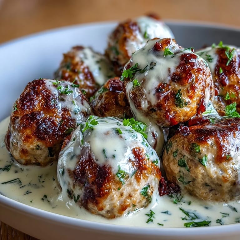Save There's something about the smell of garlic hitting hot butter that makes you stop whatever you're doing and pay attention. I discovered these creamy garlic ranch turkey meatballs on a Tuesday night when I was trying to prove to myself that weeknight dinners didn't have to be boring, and somehow ended up with something so comforting it became a regular rotation in my kitchen. The combination of ranch seasoning in the meatballs themselves with that silky garlic cream sauce felt like the right answer to a question I didn't know I was asking.
