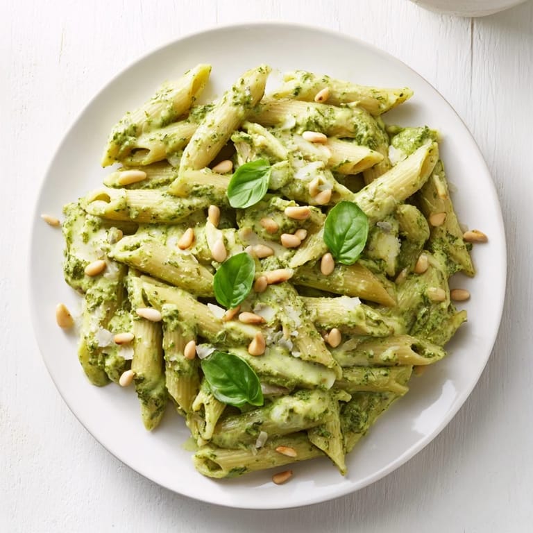 Save I stumbled on this creamy pesto pasta one Wednesday night when the fridge was nearly empty and I was too tired to think. A jar of pesto sat in the door, cream left over from Sunday's soup, and a box of fusilli in the pantry. I threw it all together over medium heat, and within minutes the kitchen smelled like a summer garden even though it was pouring rain outside. That first bite was so good I actually laughed out loud.