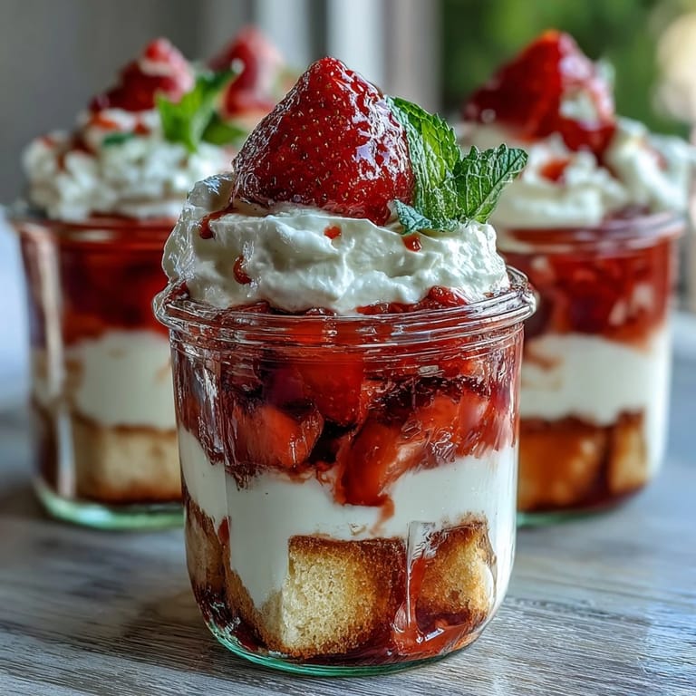 Save Last summer, I was tasked with bringing dessert to a crowded beach picnic where keeping things cold was basically impossible. That's when mason jar parfaits saved me—layered, portable, and honestly just fun to eat straight from the jar with a spoon. The moment someone bit into that fluffy shortcake and realized the strawberries had actually released their own syrup, I knew I'd found something special. Now whenever strawberry season rolls around, these jars are what my friends actually request.