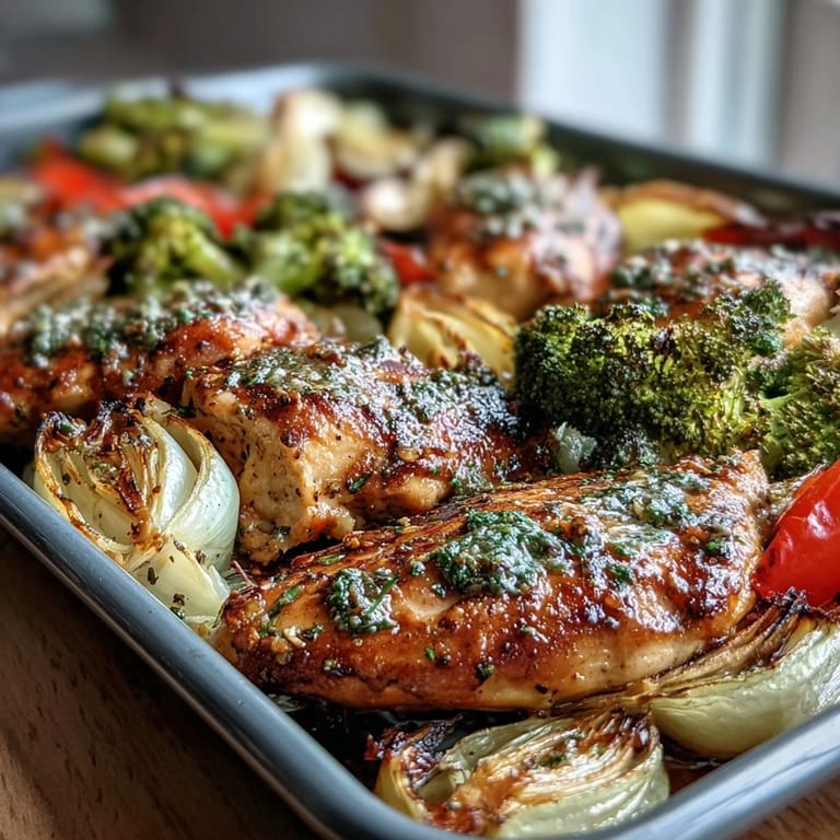 Save When weeknight dinners need to be both healthy and hassle-free, this Healthy 5-Ingredient Sheet Pan Chicken and Veggies delivers on every front. Imagine tender, juicy chicken breasts roasted alongside a vibrant medley of broccoli, bell peppers, and red onion—all seasoned with aromatic Italian herbs and roasted to caramelized perfection. This one-pan wonder requires just 10 minutes of prep and 25 minutes in the oven, making it the ultimate solution for busy families who refuse to compromise on nutrition or flavor. With minimal cleanup and maximum taste, this gluten-free, low-carb meal proves that simple ingredients can create something truly spectacular.