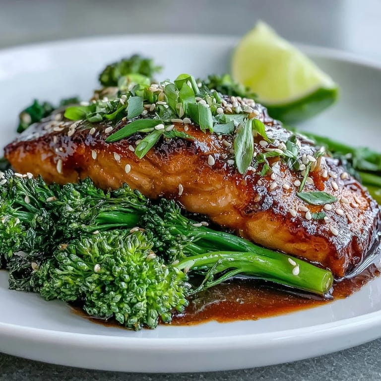 - Set a mound of sesame broccoli in the center of each plate, lean a salmon fillet against it, spoon any remaining glaze from the pan over the top, then finish with sliced spring onions and a lime wedge. This is the moment where everyone at the table realizes you might actually be a professional chef.
