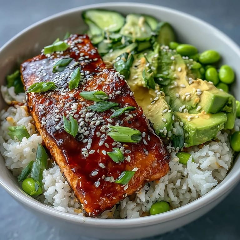 The vegetables and toppings are genuinely flexible depending on what's calling to you. I've made versions with shredded carrots for crunch, sliced radishes for peppery bite, and even shredded purple cabbage when I had it hanging around. The salmon and glaze are the non-negotiable stars, but everything else is permission to use what you have and what makes your kitchen smell good.