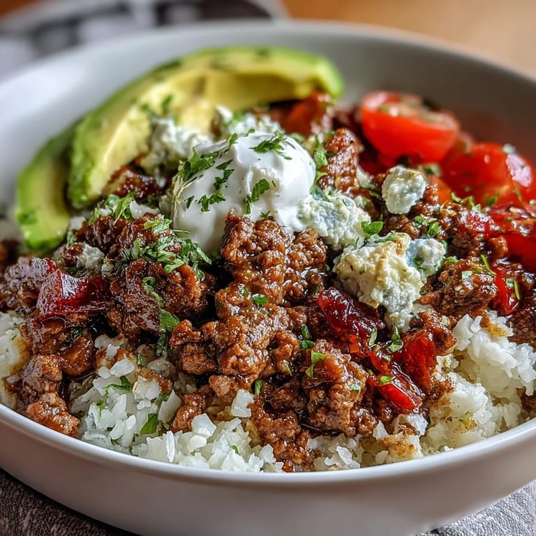 I've learned to store the beef, cauliflower rice, and toppings in separate containers so nothing gets soggy. The seasoned beef keeps well for up to three days in the fridge and reheats beautifully in a skillet or microwave. When I'm ready to eat, I just warm the beef and cauliflower rice, then pile on fresh lettuce, tomatoes, and avocado for a bowl that tastes just as vibrant as the first time.