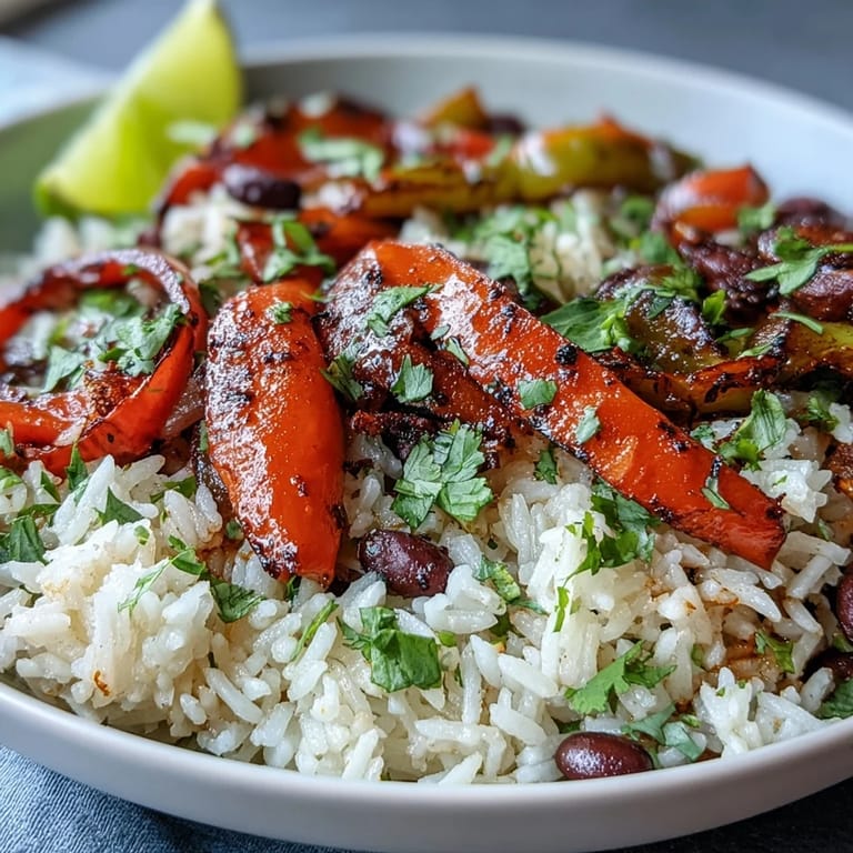 Save This skillet meal celebrates the classic fajita flavor profile without the need for multiple pans or complicated techniques. The peppers soften and sweeten as they cook, while the rice absorbs all those wonderful spices, creating layers of flavor in every bite. It's a dish that proves plant-based eating can be both simple and deeply satisfying.