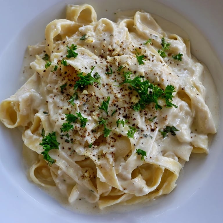 Save I discovered this version of Alfredo quite by accident one Tuesday evening when I realized I'd forgotten to buy heavy cream for a dinner party. Standing in my kitchen with a container of cottage cheese staring back at me, I took a leap and blended it smooth with milk and Parmesan, half hoping it would work and half convinced I'd just invented the world's most awkward mistake. The moment that silky sauce clung to the fettuccine, coating each strand with a delicate richness, I knew I'd stumbled onto something better than the original.