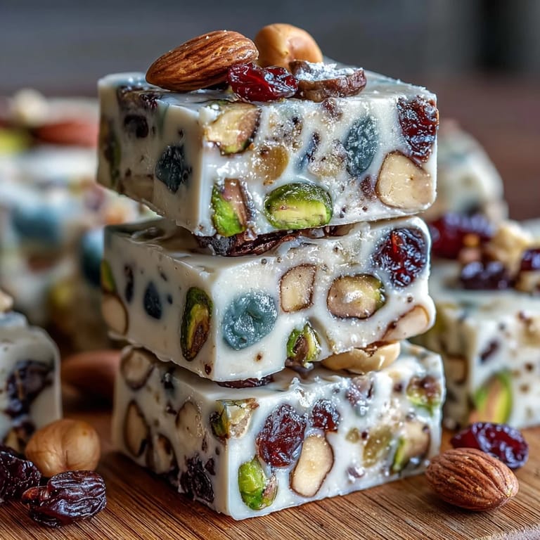 Save The process of making nougat is a rewarding culinary journey. It involves precisely heating a sugar and honey syrup before slowly incorporating it into whipped egg whites. This technique creates a glossy, aerated marshmallow-like base that serves as the perfect canvas for the jewel-toned fruits and crunchy nuts.