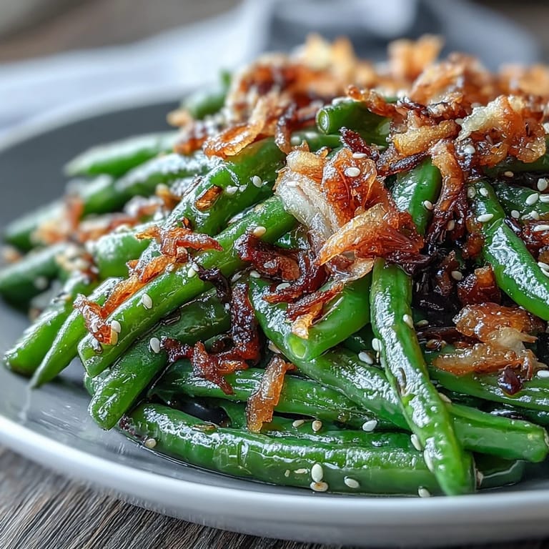 Save My neighbor knocked on my door one evening with a container of these green beans, and I was immediately struck by how the crispy onions caught the light like little golden jewels. She'd made them for a potluck, and they disappeared so fast that people were actually scraping the platter. What surprised me most wasn't just how good they tasted, but how the combination of textures—that tender snap of the bean against the crunch—kept me reaching for more. That night, I asked for her method, and it turned out to be wonderfully simple, the kind of dish that feels elegant but doesn't demand much from you.