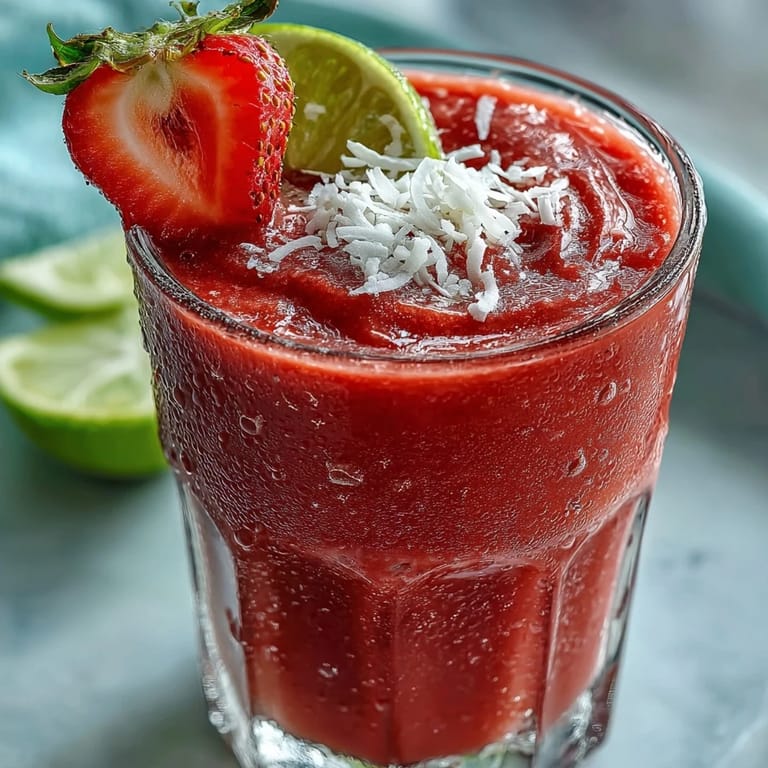 Save Imagine sipping a vibrant, frosty drink that instantly transports you to a sun-drenched tropical beach. This Strawberry Coconut Daiquiri Smoothie brings together the luscious sweetness of ripe strawberries with the rich, creamy essence of coconut, creating a refreshing beverage that's as nourishing as it is delicious. Whether you're seeking a quick breakfast boost, a post-workout refresher, or simply a guilt-free indulgence on a warm afternoon, this alcohol-free smoothie delivers pure tropical bliss in every sip.