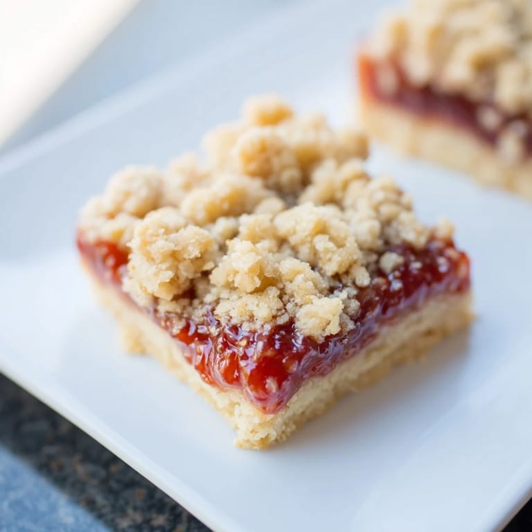 Save I started making these squares on rainy Sunday mornings when I needed something quick but comforting. The smell of butter and jam baking together always filled the kitchen with this cozy sweetness that made everyone wander in asking what was in the oven. They're forgiving enough that I could mix them up half-awake, and they never once let me down. Over time, they became my go-to whenever I wanted something homemade without the fuss. There's something quietly satisfying about pulling a pan of golden, crumbly bars from the oven and knowing they'll disappear by lunch.