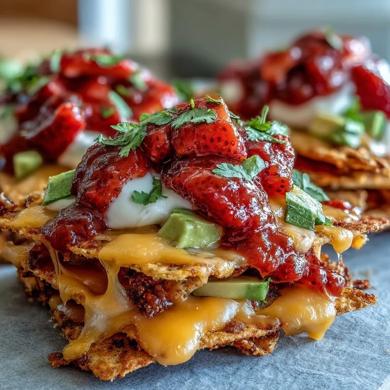 This nacho board is endlessly adaptable to your preferences and dietary needs. For a heartier, protein-packed version, add grilled chicken strips or cooked chorizo before baking. Swap the strawberries for diced mango to create a tropical twist on the salsa, or try pineapple for even more sweetness. To make this dish vegan, simply use plant-based cheese alternatives and dairy-free yogurt in place of sour cream—the flavors remain vibrant and delicious. If you want extra crunch and freshness, top the finished nachos with thinly sliced radishes or shredded lettuce just before serving. For a spicier kick, leave the seeds in the jalapeños or add a dash of hot sauce to the strawberry salsa. You can also create individual nacho portions on smaller plates for easier serving at seated gatherings.