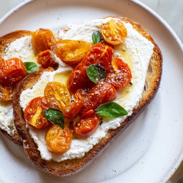 Save The smell of tomatoes roasting in olive oil has this way of making the whole kitchen feel like summer, even in the middle of February. I started making this toast on mornings when I wanted something that felt special but didn't require me to be fully awake yet. The ricotta whips up so soft and cloud-like, and when you pile those jammy tomatoes on top, it's the kind of breakfast that makes you slow down. I've served this to friends who swore they didn't like ricotta, and watched them quietly reach for seconds.