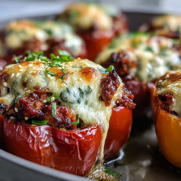 Save Last winter, I was scrolling through my phone at a dinner party when someone mentioned Korean flavors and suddenly the host was describing these beautiful stuffed peppers she'd eaten at a pop-up restaurant. The way she talked about the sweet peppers blistering in the oven, the savory turkey spiced with gochujang, the melted cheese pooling into corners—I knew I had to recreate it. What started as a half-remembered description became my kitchen obsession for weeks, testing ratios and techniques until I landed on something that tasted like that magical meal but felt entirely my own.