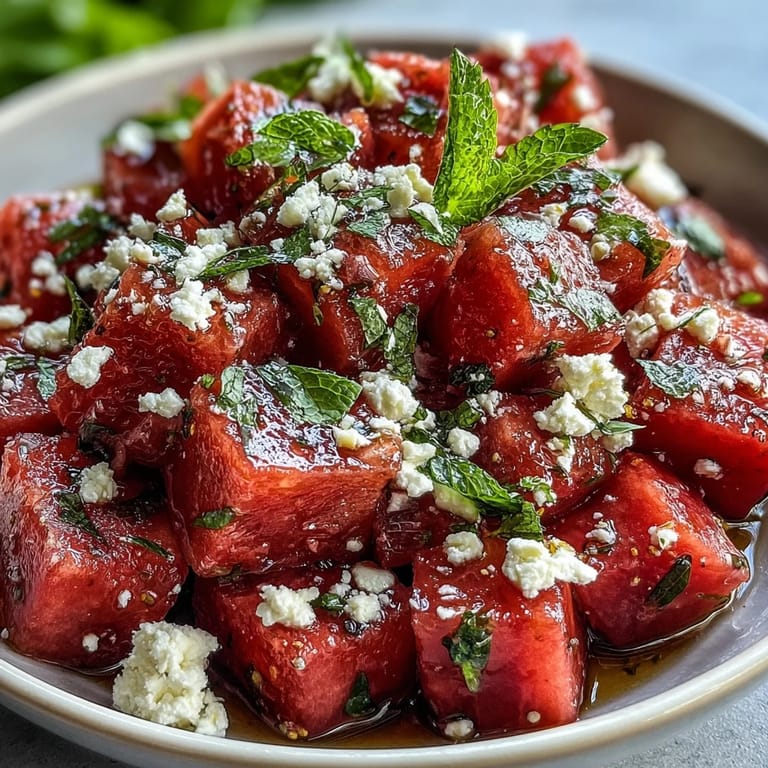 Save My neighbor knocked on my kitchen door one July afternoon with a watermelon so heavy she needed both hands to carry it. I'd just pulled mint from the garden and had crumbled feta sitting in the fridge, so naturally I started chopping. Twenty minutes later, we were sitting on her porch with bowls of this impossibly simple salad, and she said it tasted like summer itself—which felt like the highest compliment anyone could give.
