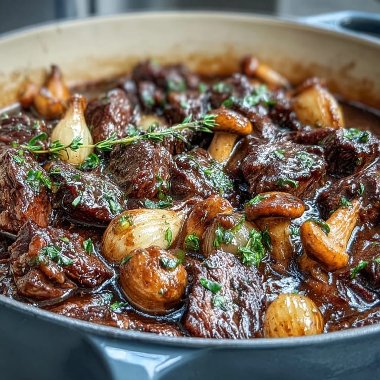 Save There's something about the smell of beef browning in a hot pot that makes you understand why the French spent centuries perfecting this dish. I stumbled into beef bourguignon during a particularly cold November when a friend handed me her grandmother's dog-eared cookbook and said, "Try this when you want to feel less alone in your kitchen." The first time I made it, I burned the garlic, forgot to scrape the pan properly, and somehow ended up with a sauce that tasted more like sadness than wine. But then I added those wild mushrooms halfway through, and something shifted—the whole pot suddenly smelled like a forest after rain, and I understood the appeal.